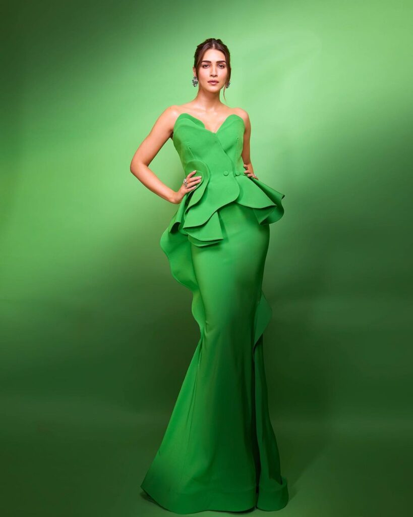 Among the dazzling attendees, Kriti Sanon stole the spotlight. The actress stunned the audience in a captivating two-piece ensemble. The emerald green outfit featured a sweetheart neckline top that flowed seamlessly into a mermaid-shaped skirt, leaving a lasting impression on the fashion scene.